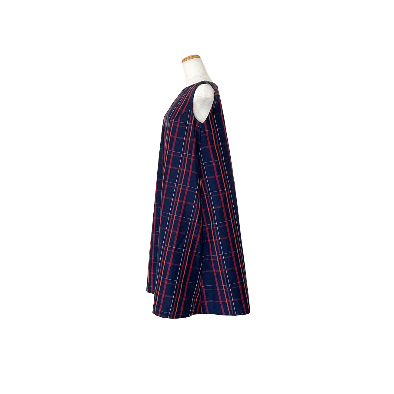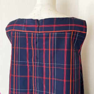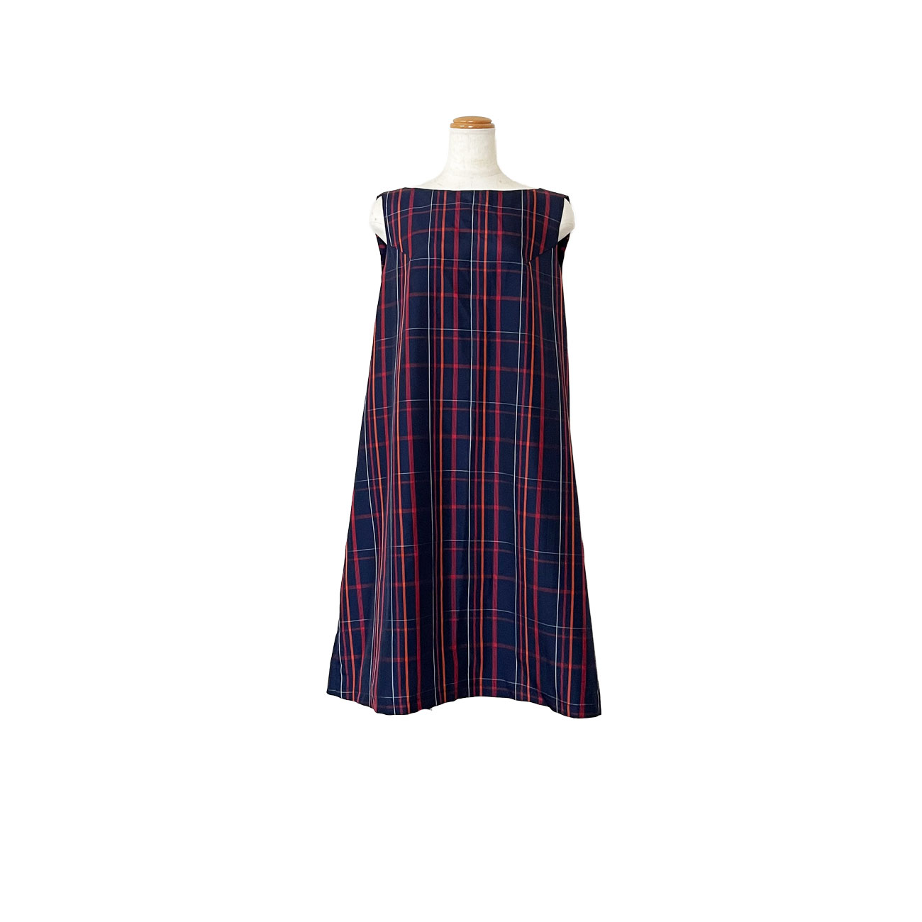アンサンブルだったため、羽織を使って後日追加でリメイクさせて頂きました!しっかり柄合わせが美しいチェック柄のノースリーブドレスに。