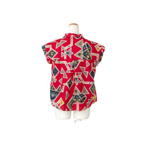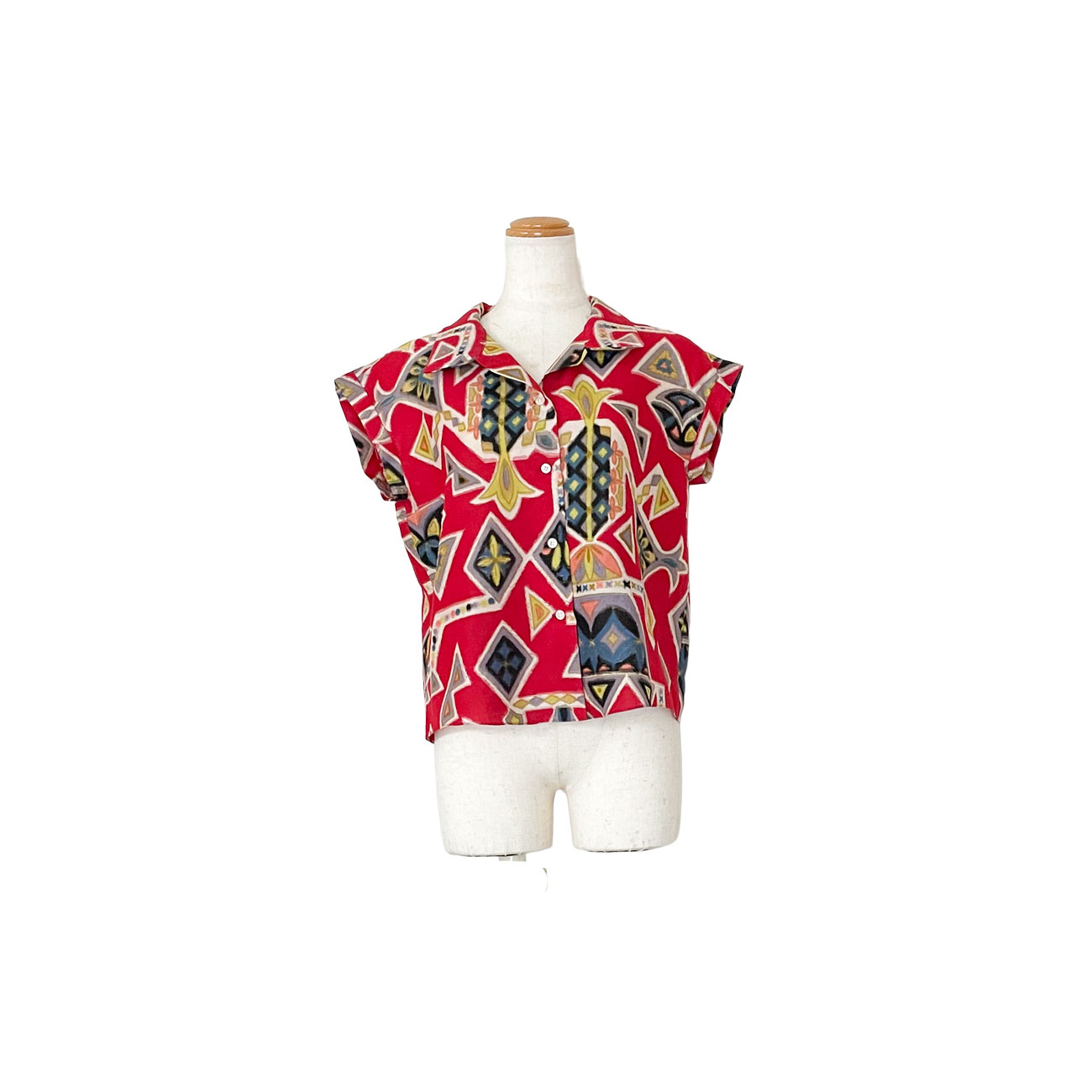 フレンチスリーブブラウス&ハイウエストギャザースカート[赤幾何学模様銘仙]