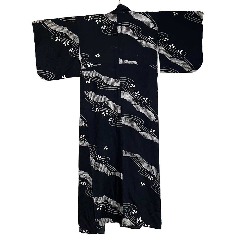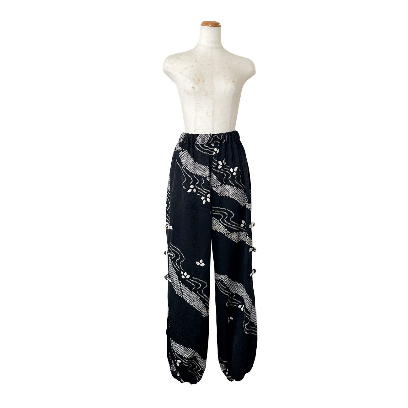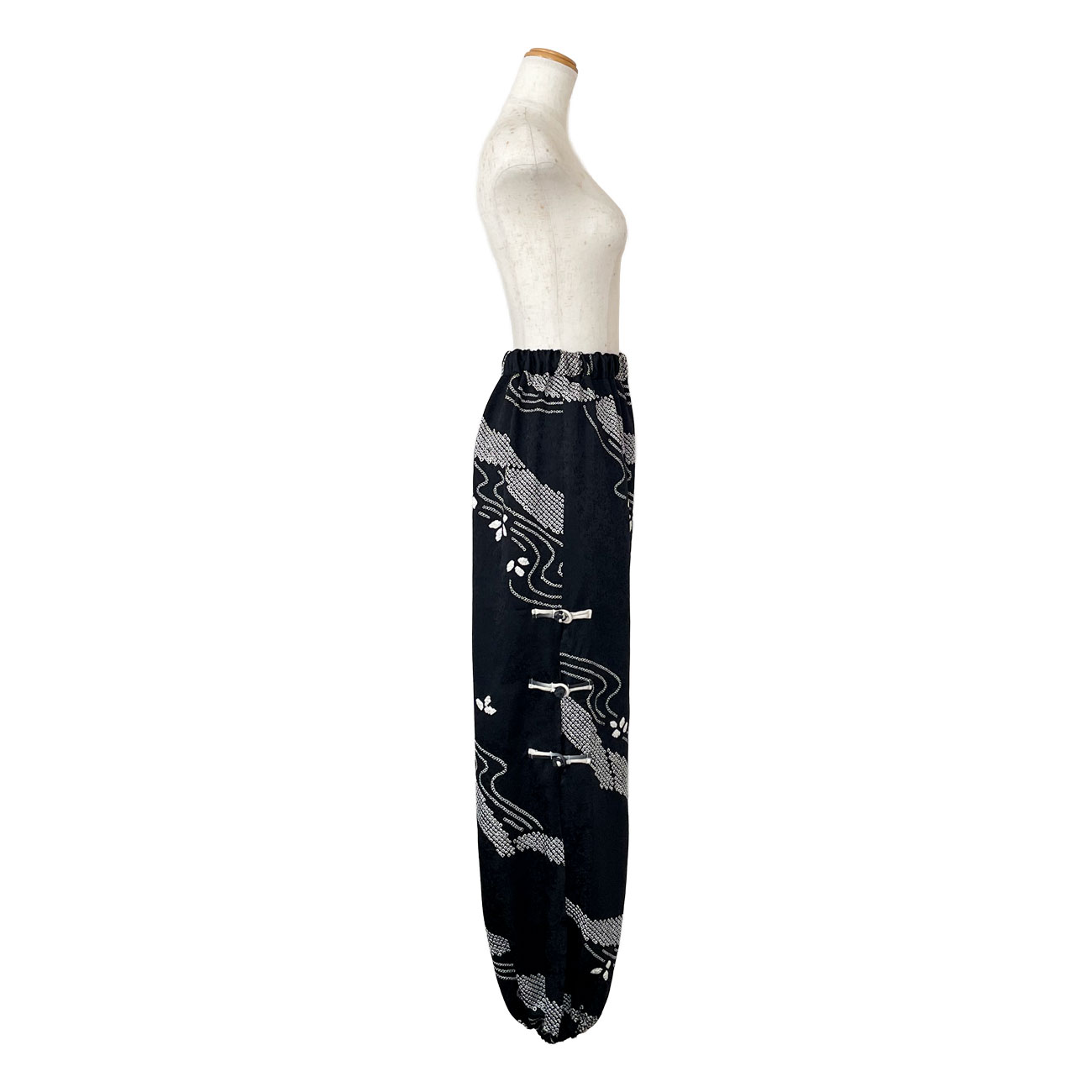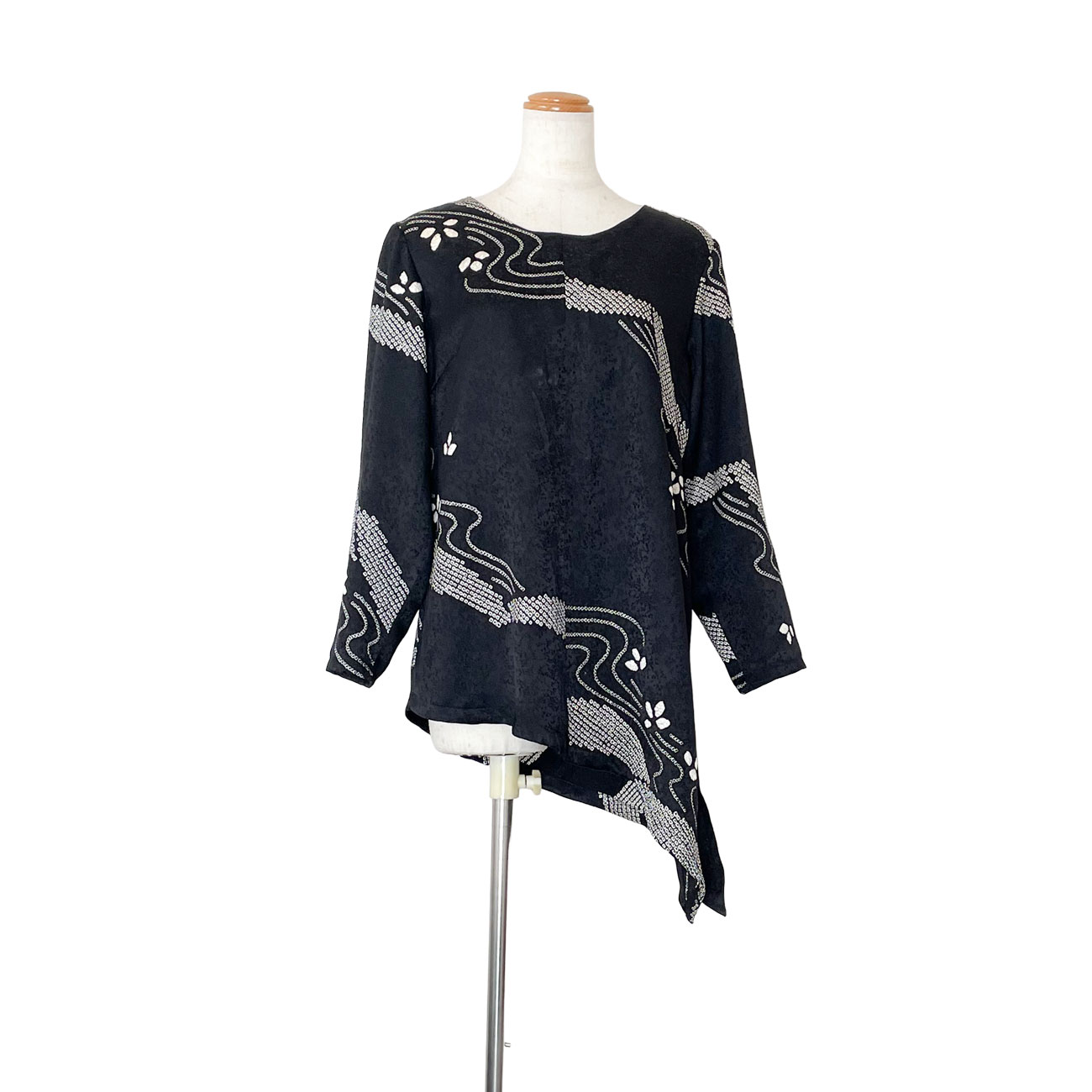 アシンメトリーチュニック&サイドオープンパンツ[流水柄絞り黒色小紋]