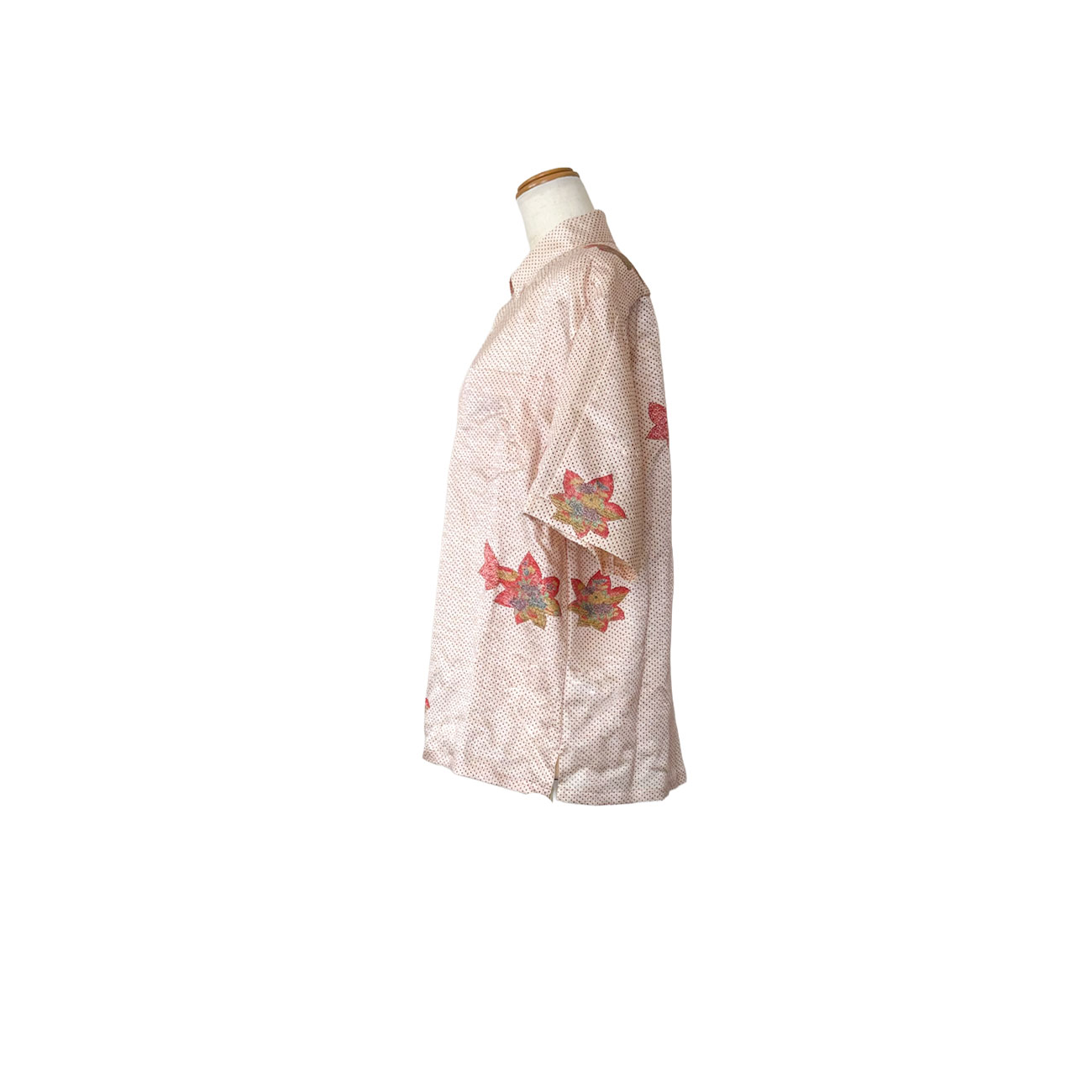 アオザイ風スリットワンピース[アイスグレー花柄手織紬]