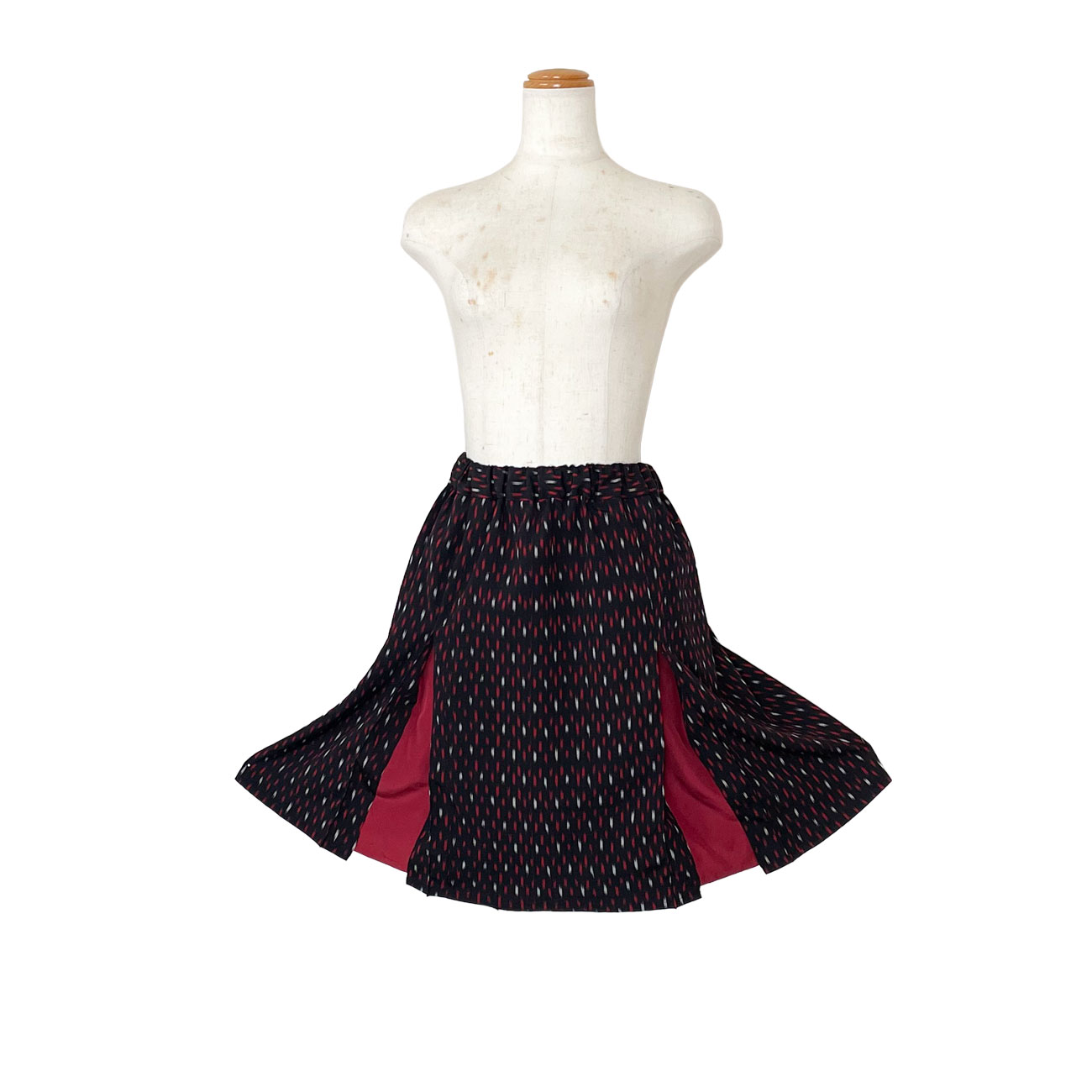 ボックスプリーツスカート&スラックス[黒地に赤白ドットお召]
