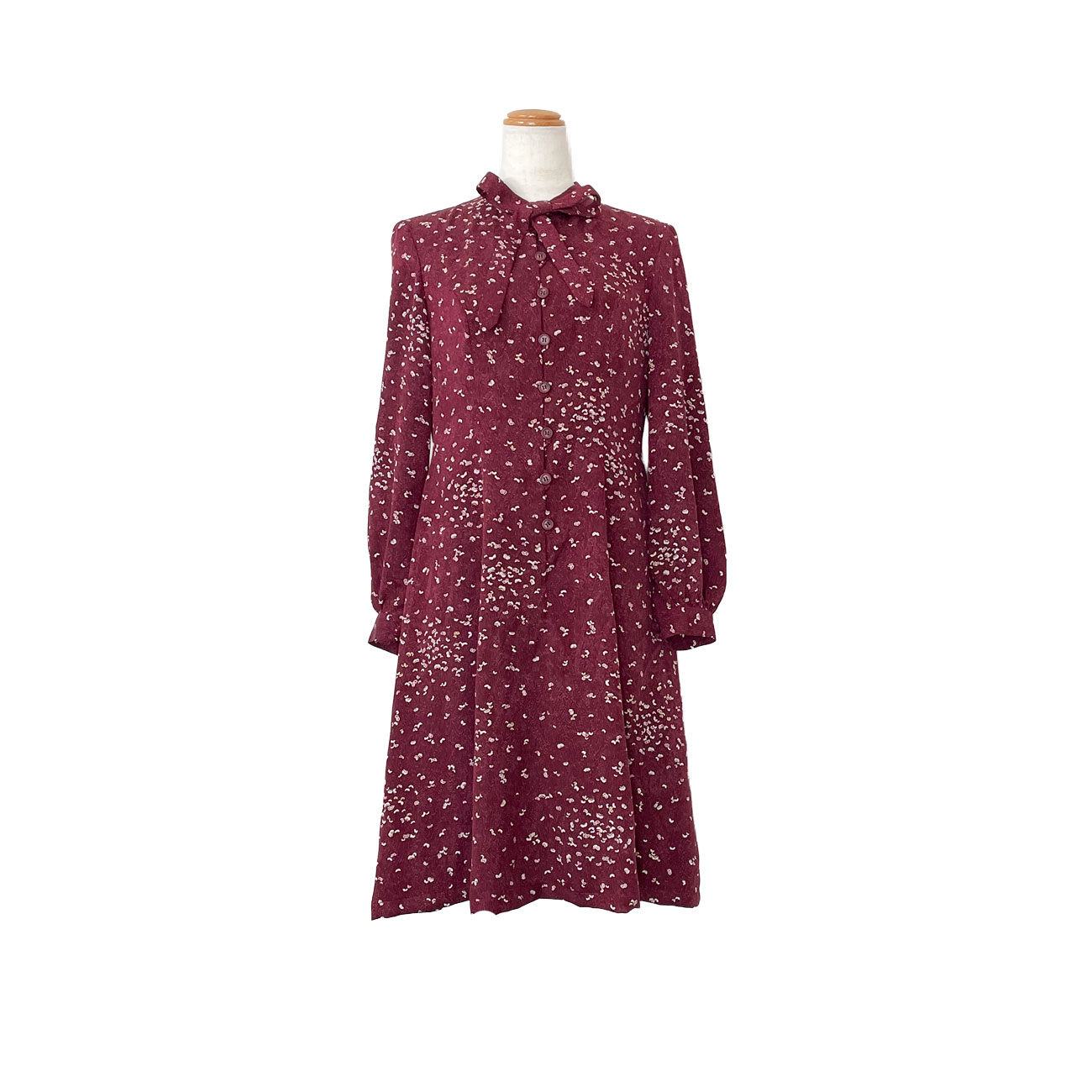リボンタイ長袖フレアドレス[赤紫蝶舞小紋錦紗]
